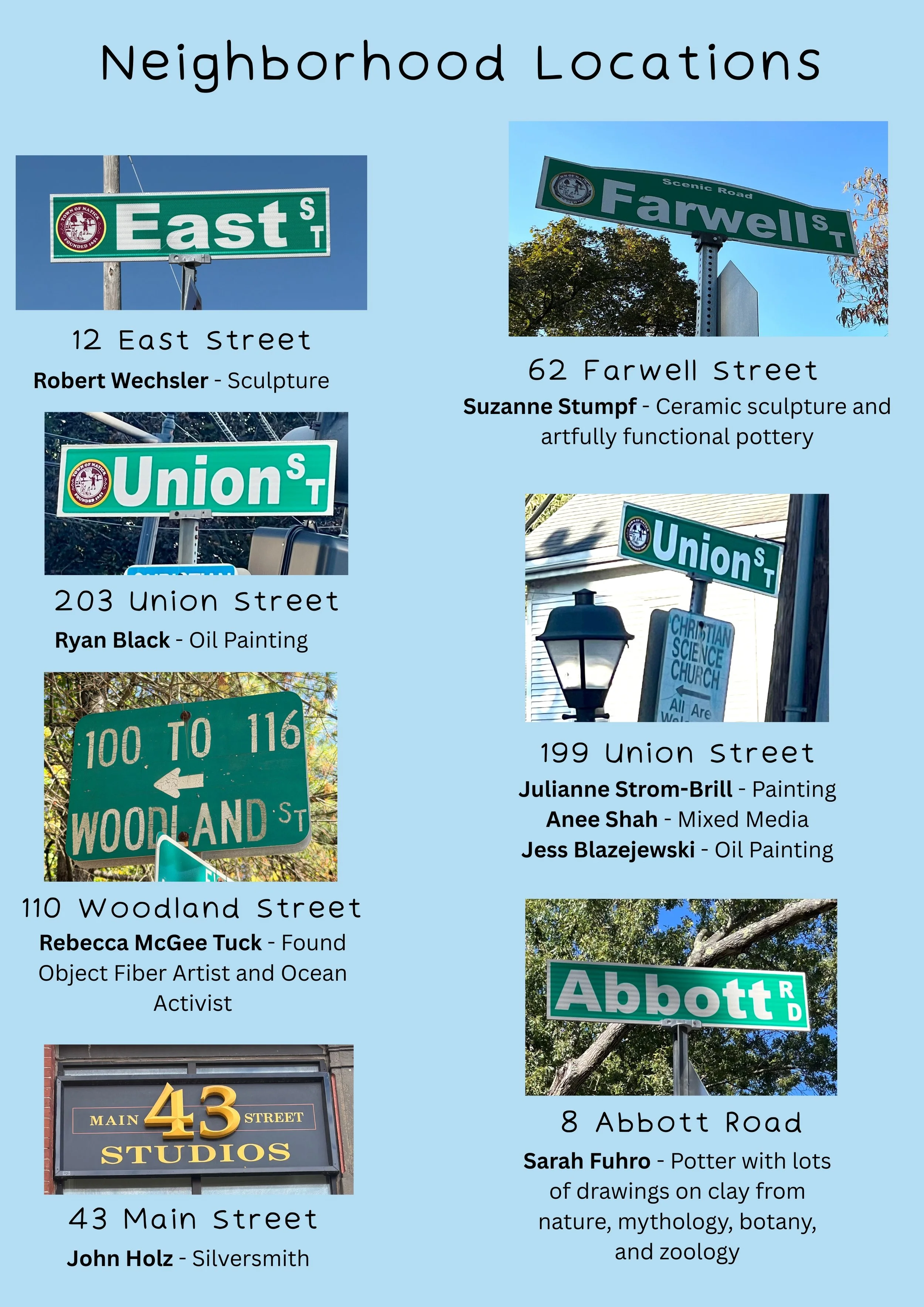 2025 marks the 22nd Anniversary of this town-wide art event and will take place on October 18 & 19, from 11am to 5pm both days. Open Studios are held at group locations and studios in Natick Center as well as neighborhood studios all across town.