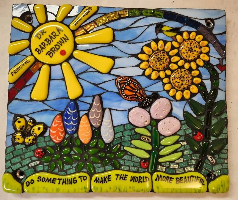 Carol’s mosaics are often fabricated with the help of many volunteers and supported by generous community donations. Commission clients, students, friends and family, infuse her creative work and help Carol continue to grow as an artist.