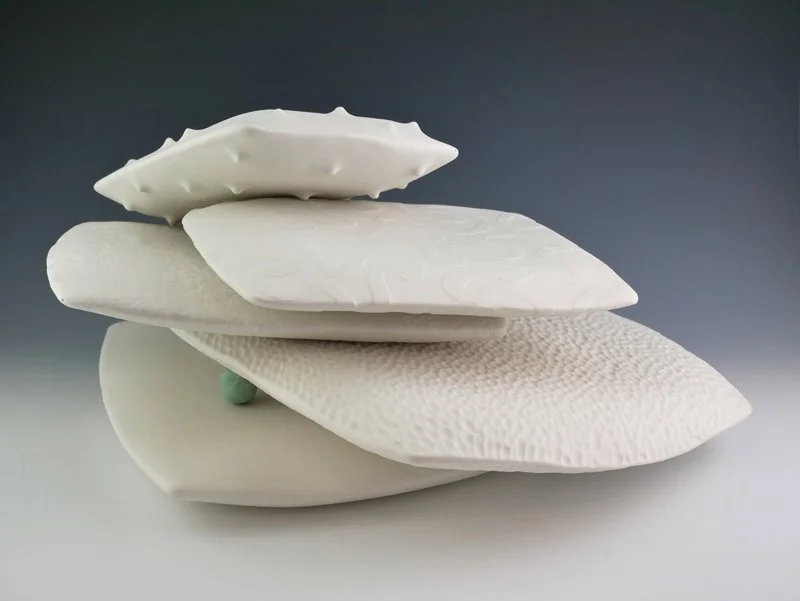 Suzanne Stumpf’s ceramic sculptures inspire reflection and introspective contemplation on a broad array of subjects spanning from the fragility and degradation of our environment, to the extraordinary beauty of the natural world, to sociological questions and concerns that are part of the challenges of the human condition. Suzanne’s first career and ongoing work as a professional musician contribute undercurrents to her work as a visual artist. One result has been her creating multi-component, “interactive” sculptures that allow for innumerable permutations of the work, such as would be possible in performances of a musical composition. For these works, the viewer is urged to participate in rearranging the parts, resulting in a variety of interpretations of the work. Many of these works have garnered prizes in national juried art exhibitions. Her sculptures have been included in numerous art publications and featured at such museums as San Angelo Museum of Fine Arts, the Fitchburg Art Museum, the Nora Eccles Harrison Museum of Art, and the Danforth Art Museum, among others.