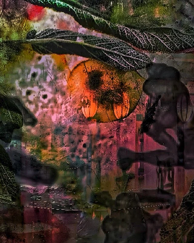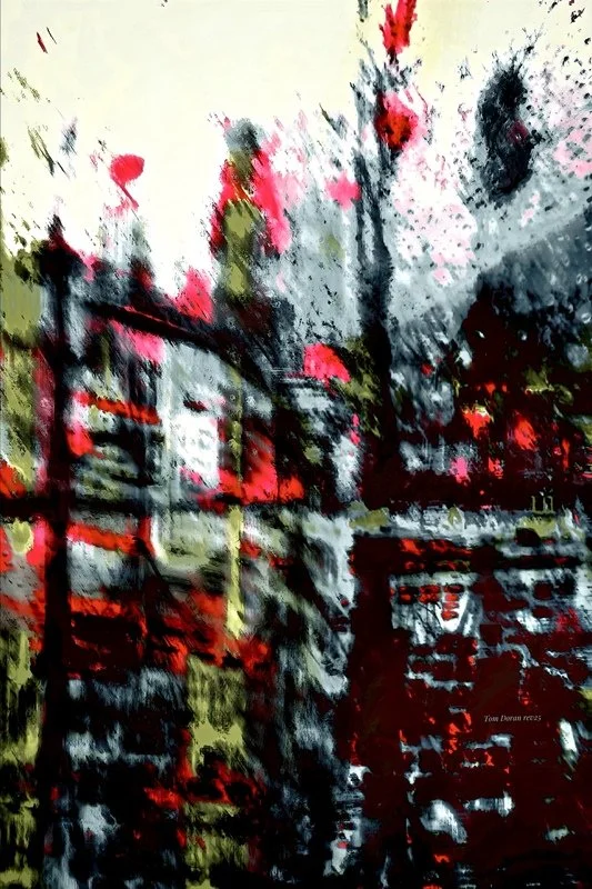 Tom combines photos and previous artworks using unique digital methods. There is an element of improvisation to most of them. Many years of Tom’s playing jazz and making paper collage provide the foundation.